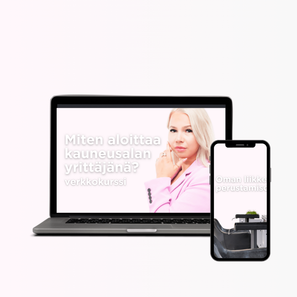Huomasin ison kauneusalan yrityksen omistavana, että uusien yrittäjien rekrytointi ja koulutusprojekti oli pois omasta ajastani. Kehitin sen tuloksena täysin kauneusalalle yksilöidyn, kattavan verkkokurssin. Sparraan aloittelevat kauneusalan yrittäjät uran alkuun!
